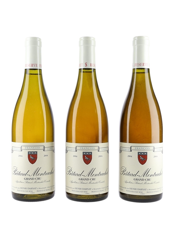 A case of three bottles 2004 Bâtard-Montrachet Grand Cru Réserve François Labet, bottled by Henri Darnat, who took over the family domaine in 2000 and converted it to organic production.