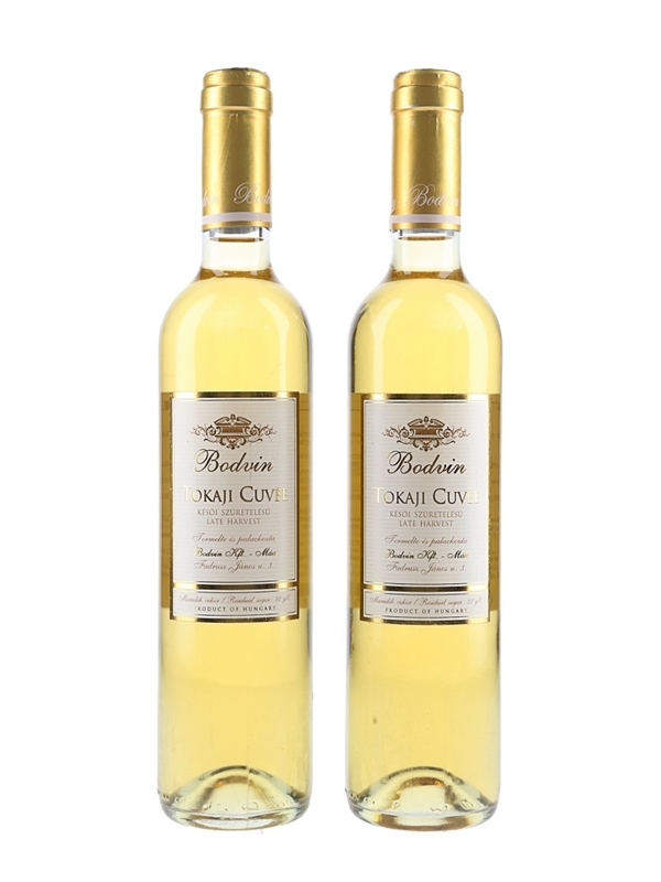 This lot contains two 50cl bottles of 2014 Bodvin Late Harvest Tokaji Cuvée. At least half of the grapes in this wine are Aszú, or noble rot affected, and this has a residual sugar level of 92 grams per litre.