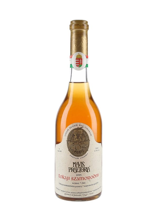 A bottle of 1995 Navis Praetoria Szaraz Dry Tokaji Szamorodni ('as was born') made from botrytised grapes harvested from the southern slopes of the tokay hills