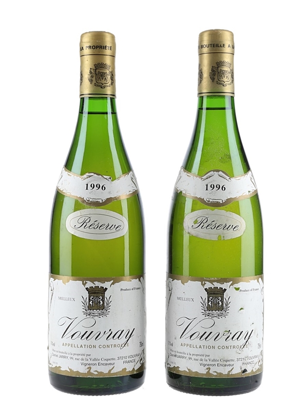 This lot contains two bottles of 1996 Vouvray Moelleux Reserve from Daniel Jarry.