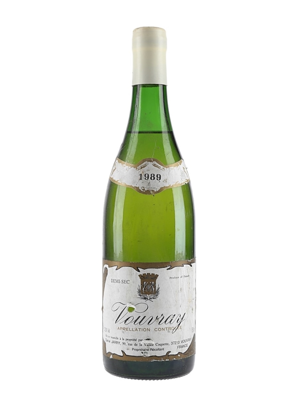 A bottle of 1989 Vouvray Demi-Sec from Daniel Jarry. Demi-Sec refers to wines of around 4 to 12 grams per litre of residual sugar.