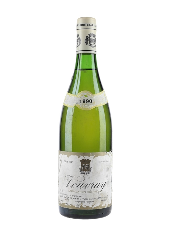 A bottle of 1990 Vouvray Demi-Sec from Daniel Jarry. Demi-Sec refers to wines of around 4 to 12 grams per litre of residual sugar.