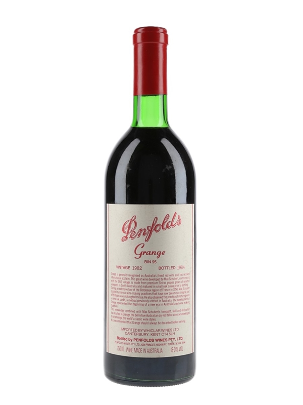 A bottle of 1982 Penfolds Grange, Bin 95, bottled in 1984.