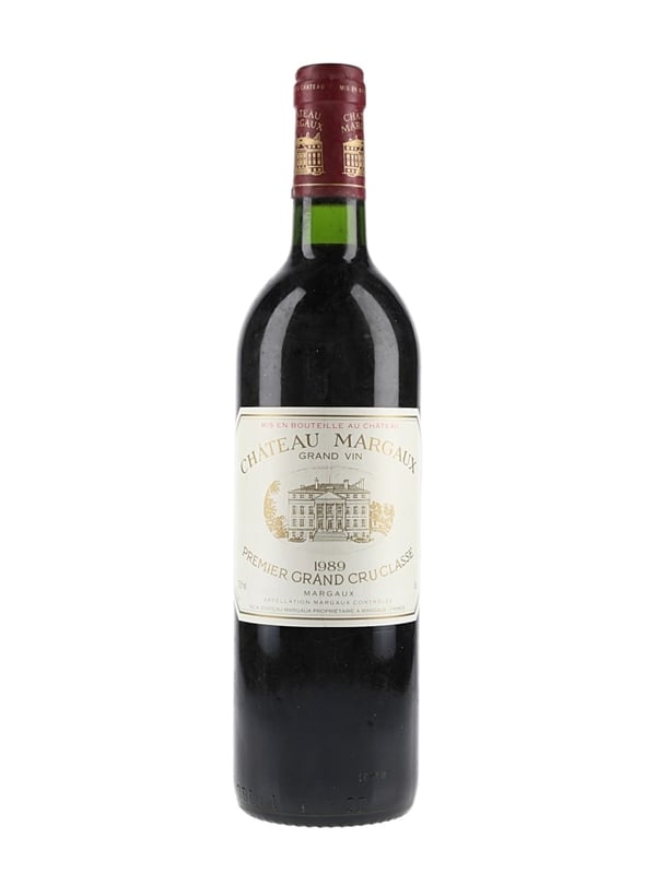 A bottle of 1989 Chateau Margaux Premier Grand Cru Classé from Bordeaux.