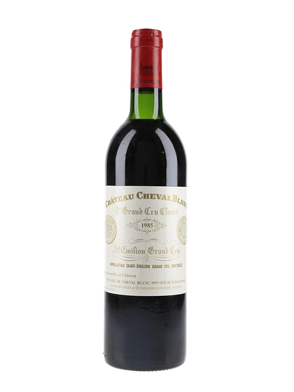 A bottle of 1985 Château Cheval Blanc Saint-Emilion 1er Grand Cru Classé.