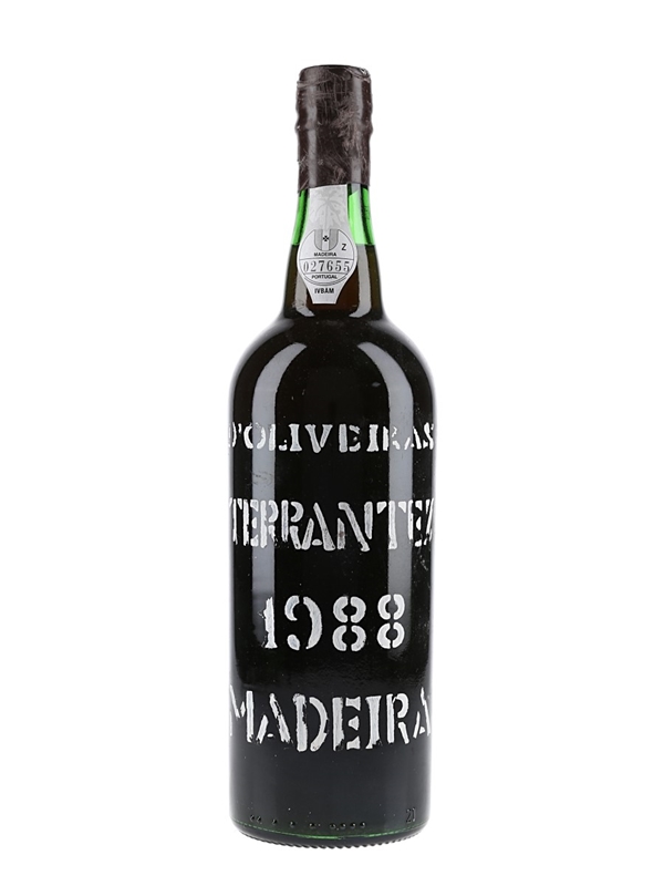 A bottle of D'Oliveiras 1988 Terrantez, an off dry style of Madeira, occasionally seen at auction. This was matured for over 25 years in old oak casks, and bottled in 2015.
