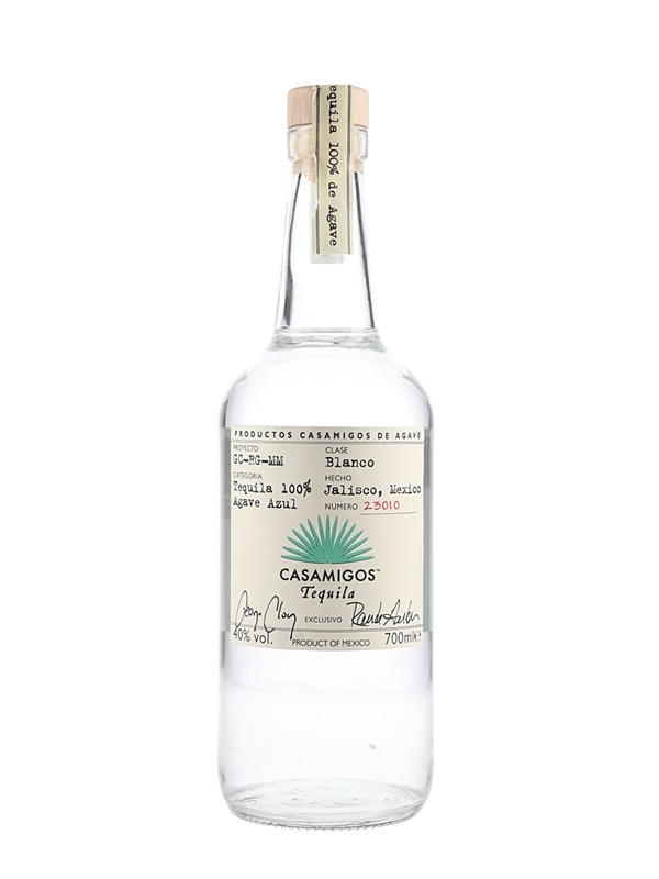 A bottle of Casamigos Blanco tequila from Jalisco, Mexico.