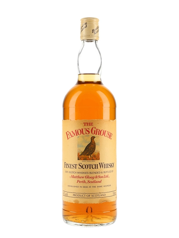 A litre bottle of The Famous Grouse Finest Scotch Whisky, produced by Matthew Gloag & Son Ltd. This was bottled for Duty Free market only.