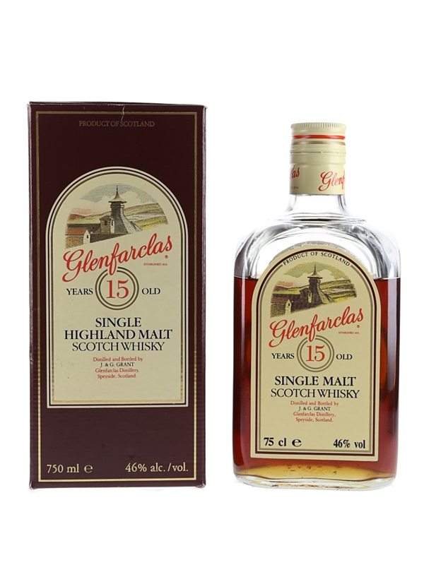 A bottle of Glenfarclas 15 Year Old Single Malt Scotch Whisky distilled and bottled by J.& G Grant. We estimate this was bottled in the 1980s.