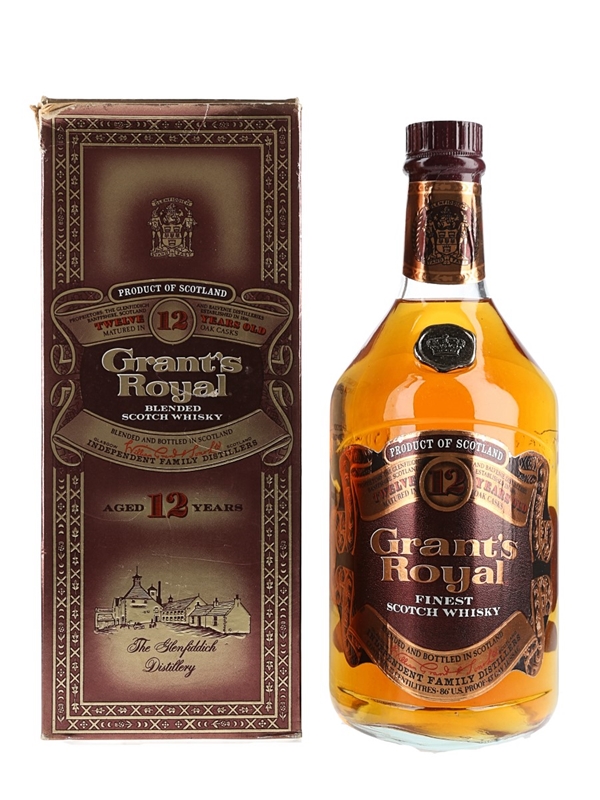 A bottle of Grant's Royal 12 Year Old Finest Scotch Whisky, produced by William Grant & Sons Ltd. We estimate this was bottled in the 1980s.