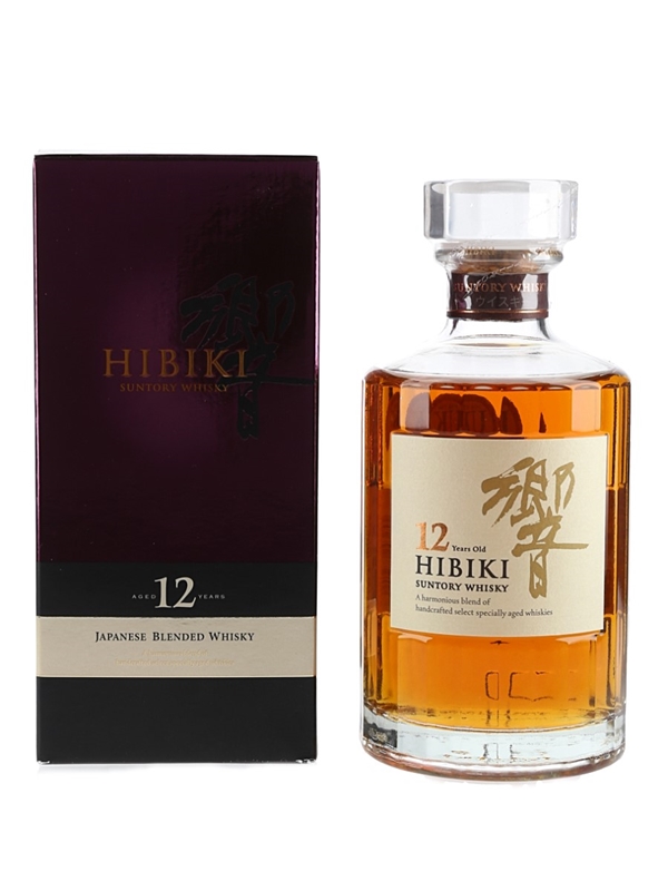 A 50cl bottle of Hibiki 12 Year Old Suntory Whisky, a blend of specially aged whiskies. This was imported to the UK by Morrison Bowmore Distillers Limited.