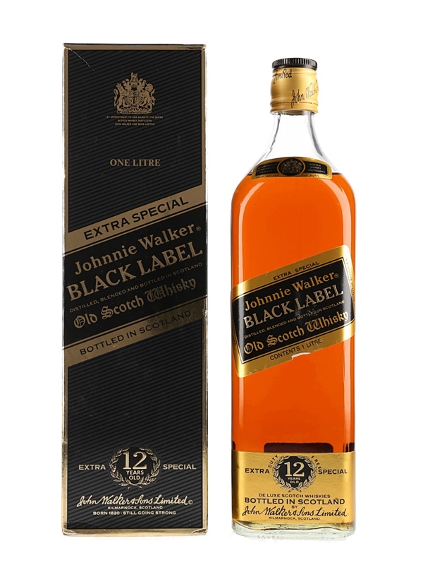 A litre bottle of Johnnie Walker Black Label 12 Year Old Extra Special Old Scotch Whisky. This was bottled for duty free stores, we estimate in the 1980s.