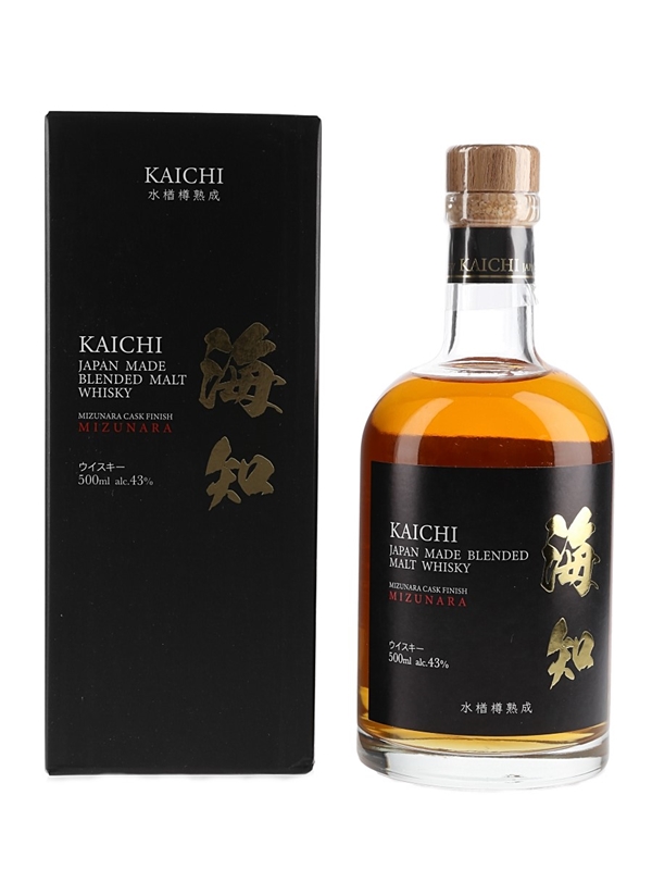 A bottle of Kaichi Blended Malt Whisky finished in Mizunara casks before bottled at 43% ABV.