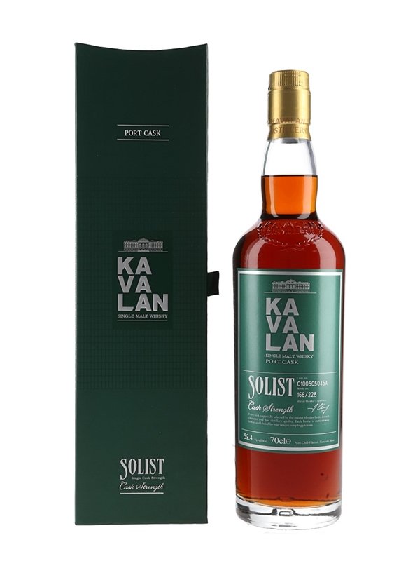 A bottle of Kavalan Solist 2010 Single Cask, Cask Strength Single Malt Whisky matured in a single Port Cask and bottled at a cask strength of 59.4%. The bottling code indicates this was bottled on 06 March 2017.