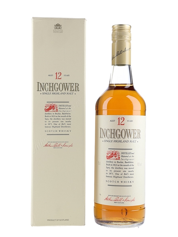 A bottle of Inchgower 12 Year Old Single Highland Malt Scotch Whisky, produced by Arthur Bell & Sons. We estimate this was bottled in the 1980s.