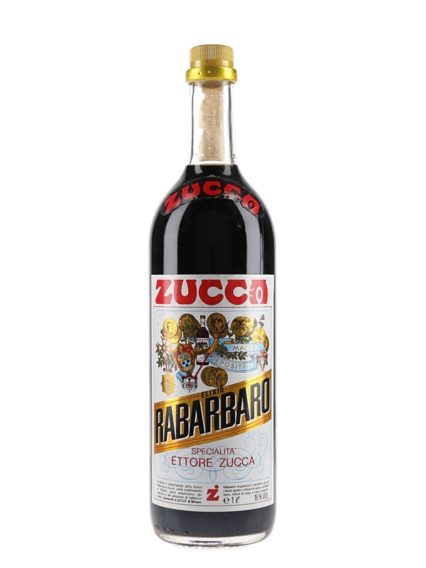 A litre bottle of Zucca Elixir Rabarbaro, a rhubarb based bitter-sweet liqueur produced in Italy. We estimate this was bottled in the 1980s.