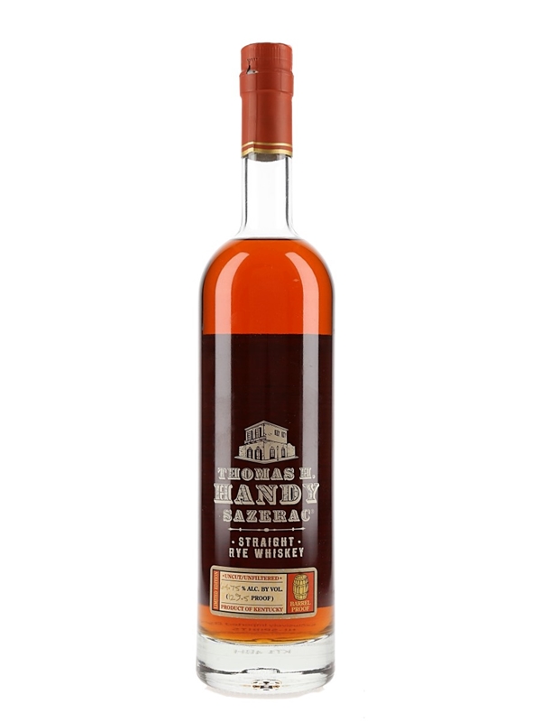 A bottle of Thomas H Handy Sazerac Limited Edition Straight Rye Whiskey distilled in 2015, matured for 6 years and bottled at a cask strength of 64.75% ABV in 2021 as part of the Buffalo Trace Antique Collection.