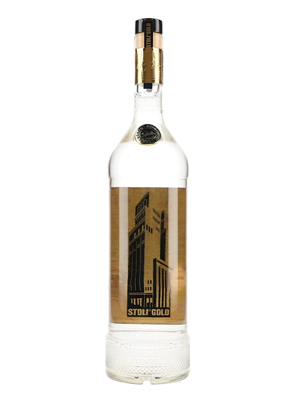 A litre bottle of Stoli Gold Vodka made from wheat and rye produced in Latvia.