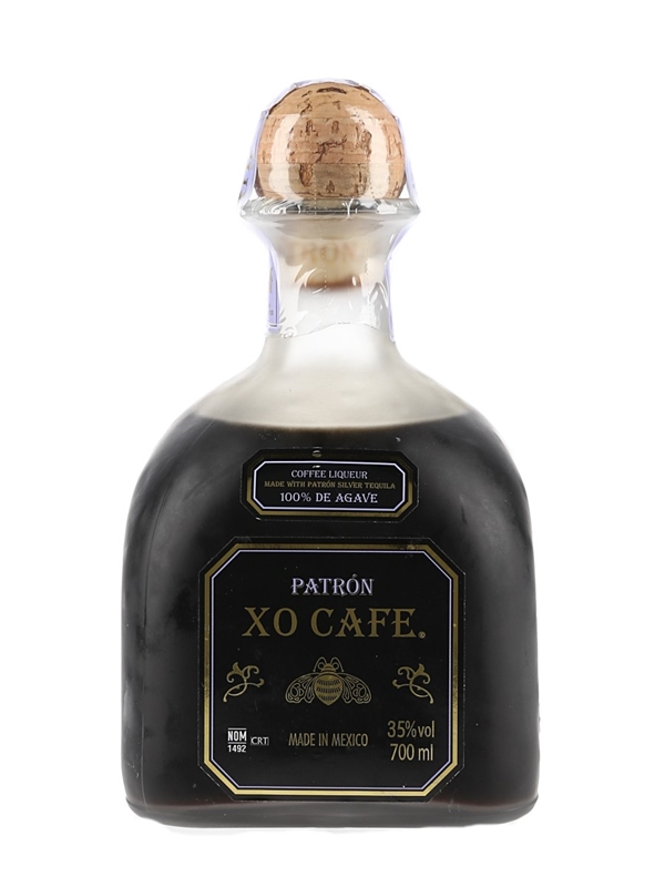 A bottle of Patrón XO Café, a coffee liqueur made with Patrón Silver Tequila from Mexico.