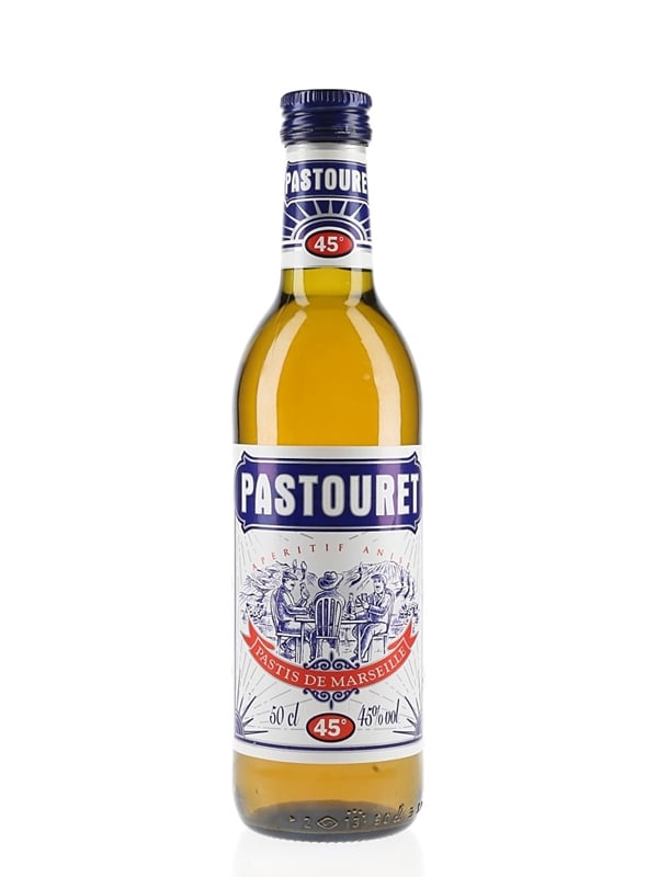 A 50cl bottle of Pastouret Pastis De Marseille, produced and bottled in France.