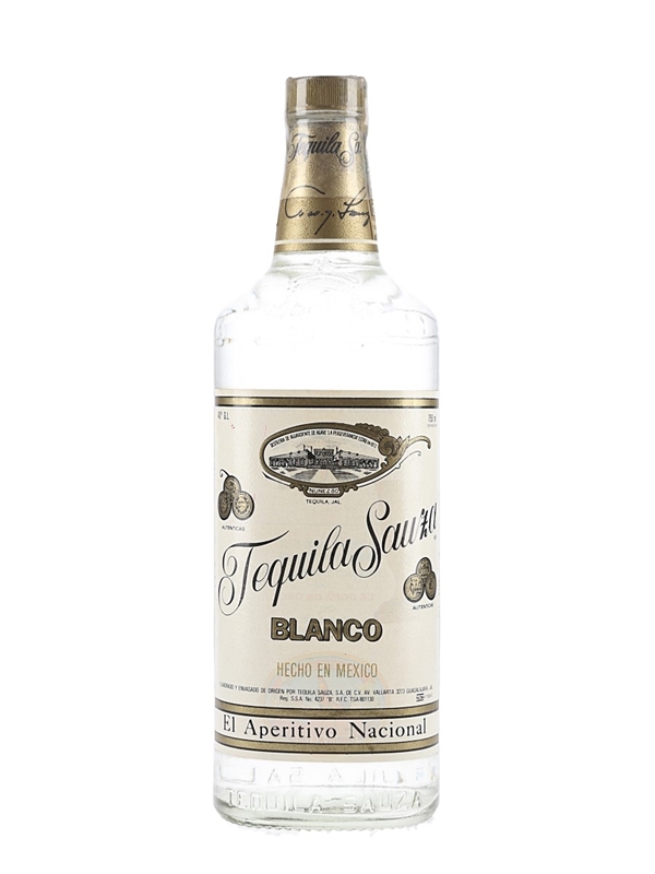 A bottle of Sauza Tequila Blanco produced in Mexico. We estimate this was bottled in the 1980s.