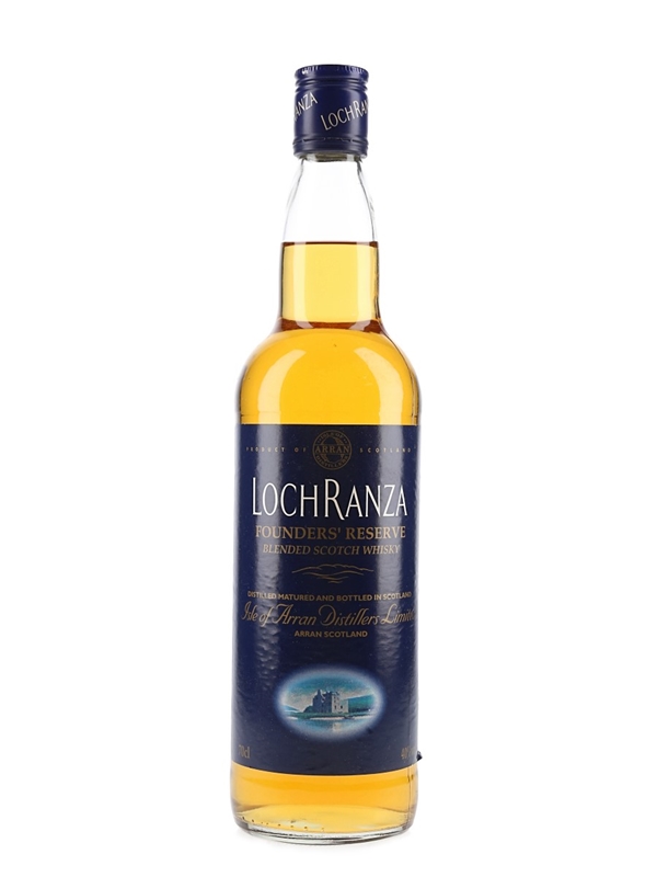 A bottle of Lochranza Founders' Reserve Blended Scotch Whisky. This was bottled for those who invested in the Arran distillery when it first opened in 1995 and contains a high proportion of Arran malt.