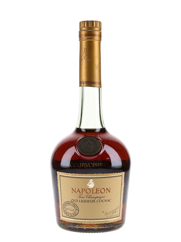 A bottle of Courvoisier Napoleon Fine Champagne Old Liqueur Cognac. We estimate this was bottled in the 1980s.