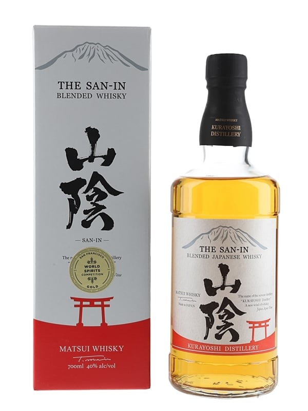 A bottle The San-In Blended Japanese Whisky bottled at Kurayoshi distillery.