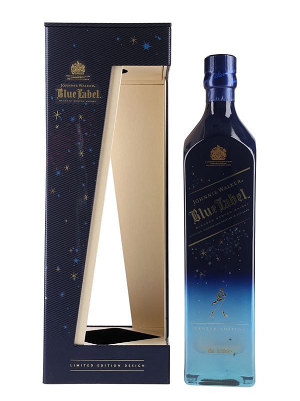 A bottle of Johnnie Walker Blue Label Winter Edition Blended Scotch Whisky. This was released for Christmas 2016.