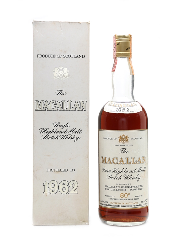 A bottle of The Macallan 1962, bottled by Campbell, Hope & King for Italian importer Rinaldi. We estimate this was bottled in the 1970s.