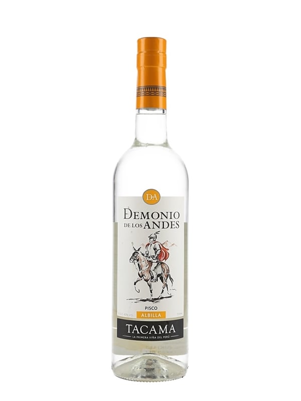 A bottle of Demonio De Los Andes made from Albilla grape, produce of Peru. Demonio De Los Andes translates as 'Demon of the Andes', and is made with grapes from the oldest vineyard in South America. This was imported to UK by Michael Palij, Master Of Wine, Ltd.