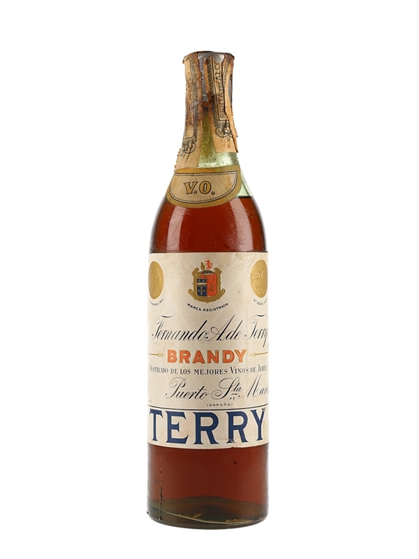 A bottle of Fernando A. de Terry VO Spanish brandy, produced in the Jerez region. We estimate this was bottled in the 1960s.