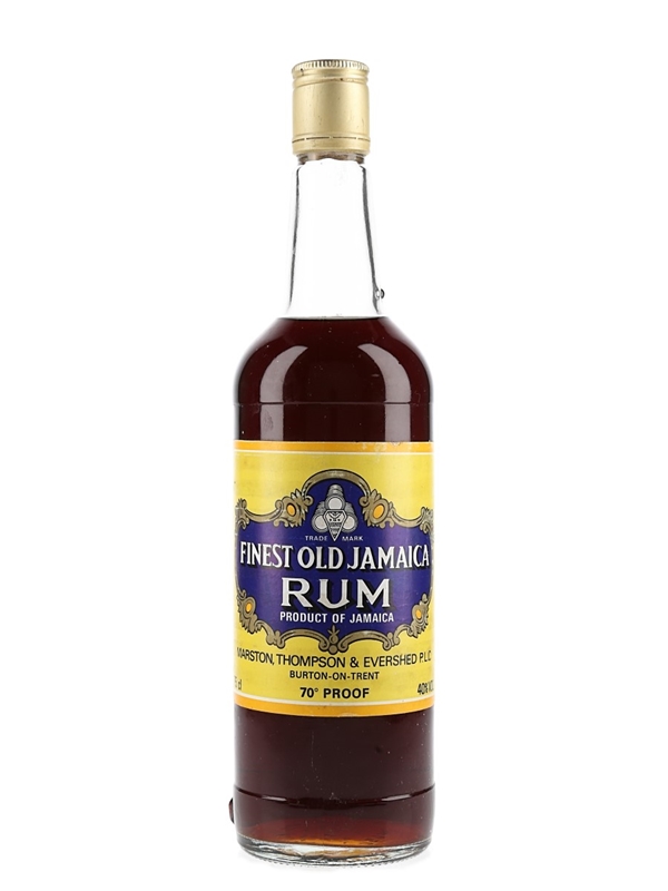 A bottle of Finest Old Jamaican Rum produced by Marston, Thompson & Evershed Plc., Burton On Trent. We estimate this was bottled in the 1970s to 1980s.