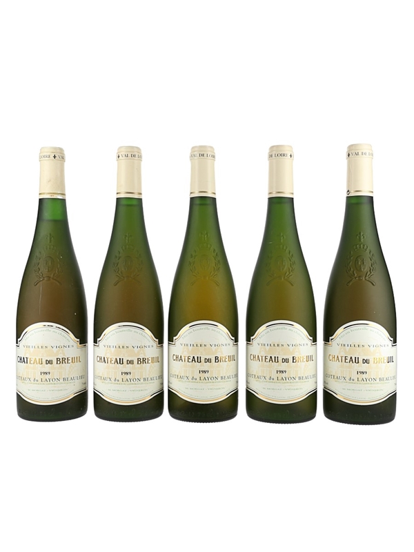 This lot contains five bottles of 1989 Coteaux Du Layon Beaulieu Vielles Vignes from Château du Breuil.