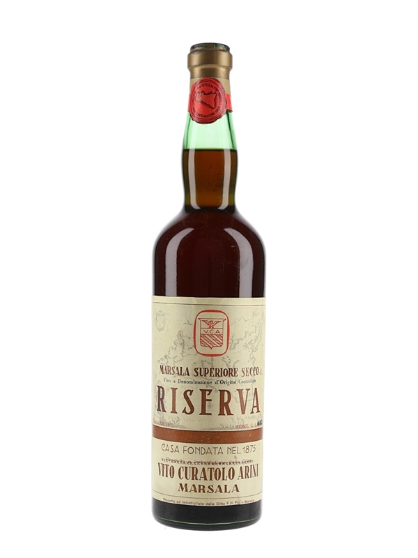 A bottle of Vito Curatolo Arini Marsala Superiore Riserva, a fortified wine from Italy.