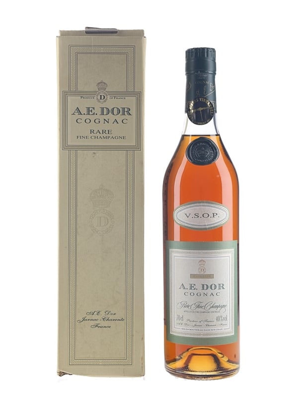 A bottle of A E Dor VSOP Fine Champagne Cognac from the Jarnac Charente commune.