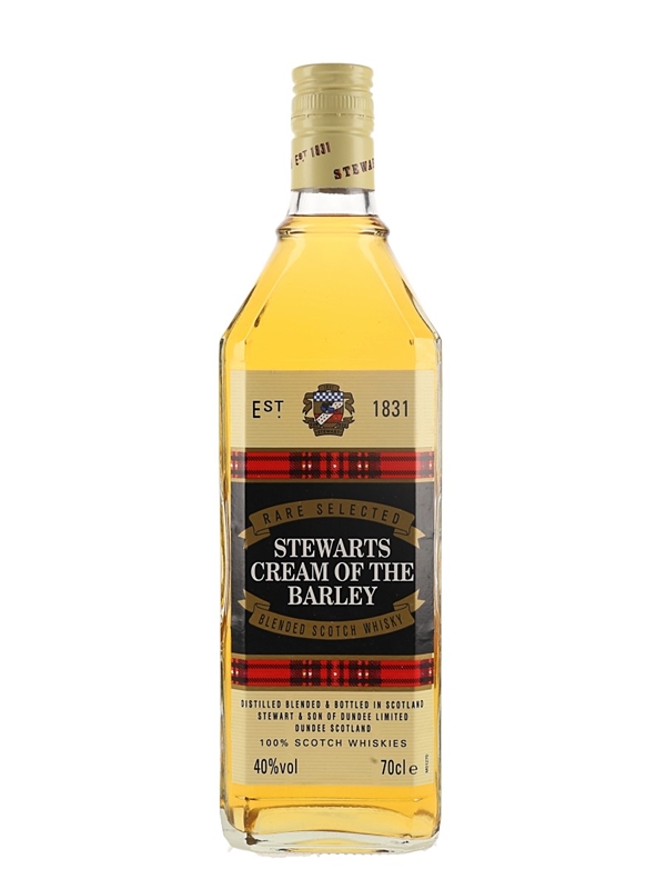 A bottle of Stewarts Cream Of The Barley Rare Selected Blended Scotch Whisky, distilled, blended and bottled by Stewart & Son of Dundee Limited. We estimate this was bottled in the 1990s.