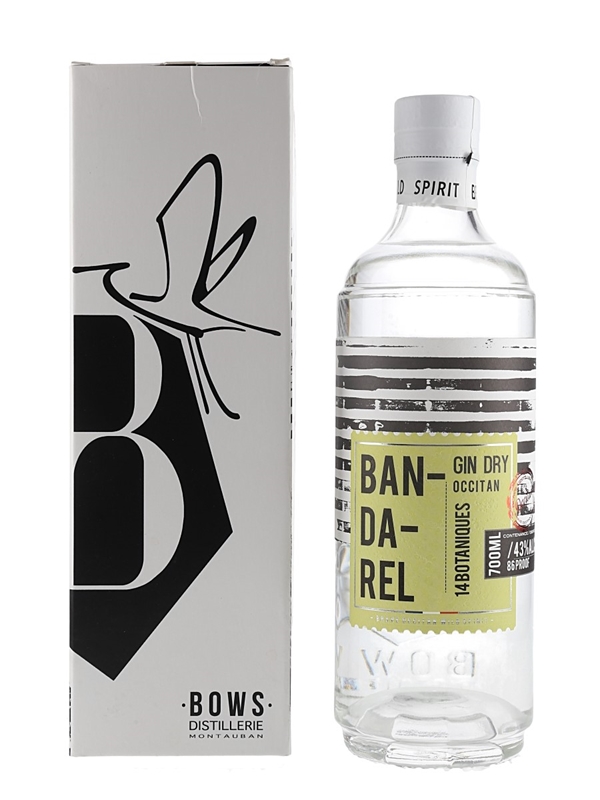 A 50cl bottle of Bandarel Dry Gin distilled and bottled in Occitanie, France.