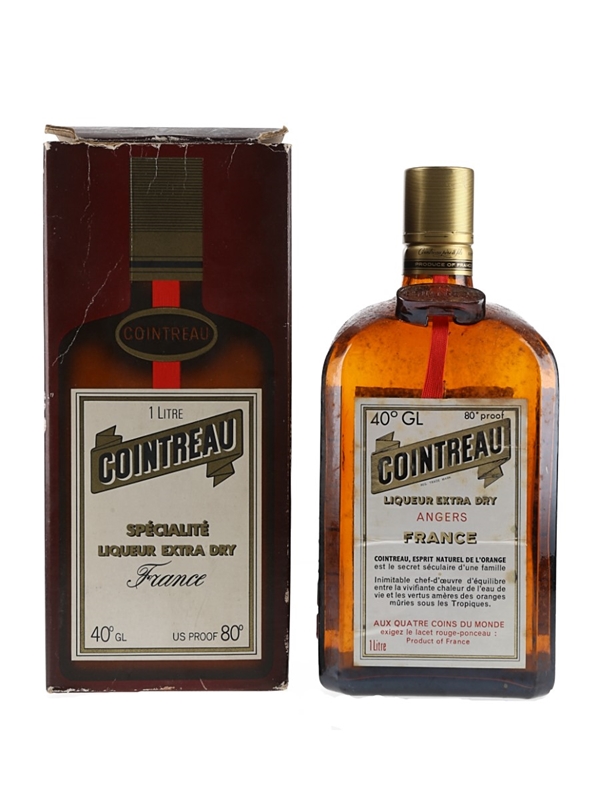 A 100cl bottle of Cointreau Extra Dry, an orange liqueur from France first produced in 1875. We estimate this was bottled in the 1970s.