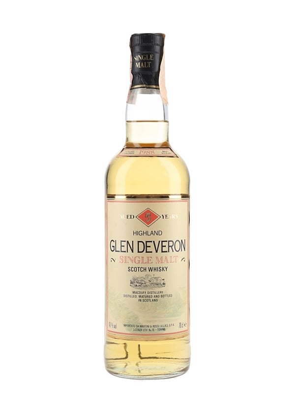 A bottle of Glen Deveron 5 Year Old Highland Single Malt Scotch Whisky. This was distilled in 1988, matured and bottled in Scotland for the Italian market and imported by Martini & Rossi, we estimate in the 1990s.