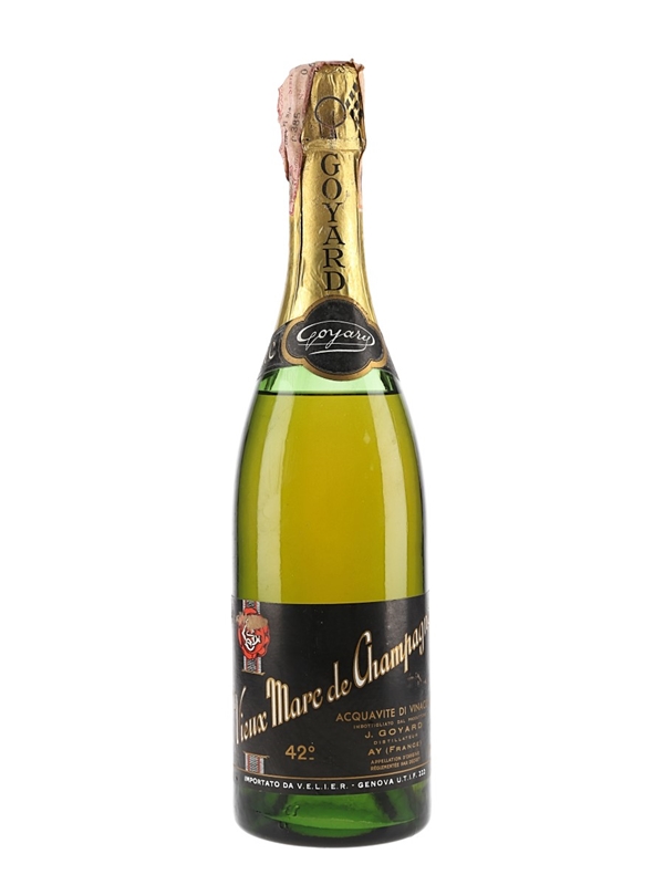 A bottle of Vieux Marc de Champagne produced in France by J Goyard. This was bottled for the Italian market and imported by Velier, we estimate in the 1960s to 1970s.