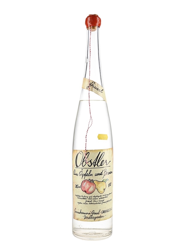 A 150cl bottle of Obstler made from apples and pears at Enzianbrennerei Grassl distillery in Germany.