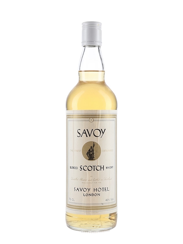 A bottle of blended Scotch whisky bottled exclusively for the Savoy Hotel, London. We estimate this was bottled in the 1980s.