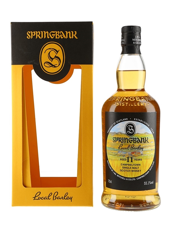 A bottle of Springbank 11 Year Old Local Barley Campbeltown Single Malt Scotch Whisky. This was distilled in May 2011 from Bere barley grown on Aros Farm, matured for 11 years and bottled in December 2022.
