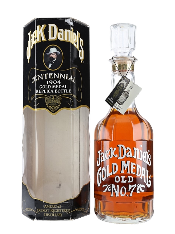A magnum bottle of Jack Daniel's, released in 2004 to commemorate the gold medal awarded to Jack Daniel's at the 1904 World's Fair in St Louis, Missouri. This release is a recreation of a 1970s bottling.