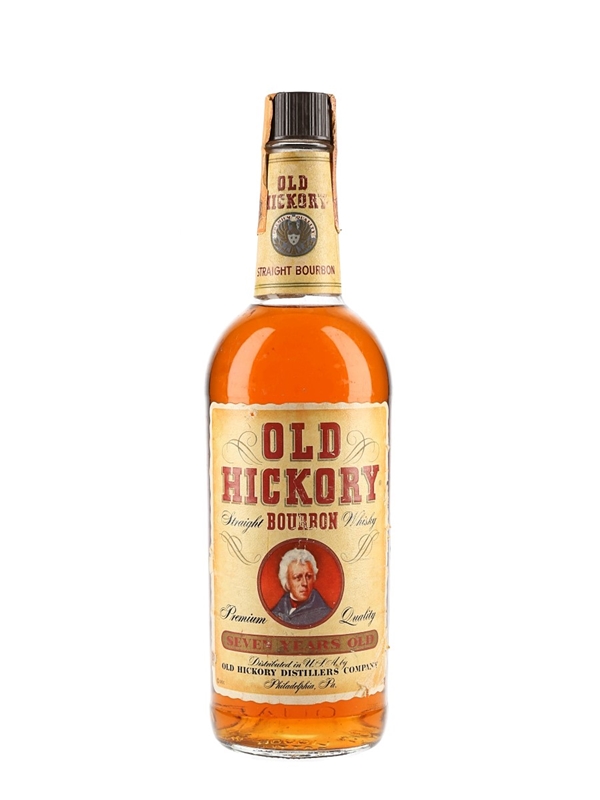 A bottle of Old Hickory seven Year Old Straight Bourbon Whisky, produced in Philadelphia, United States, by Continental Distilling Corporation. This was imported to Italy by Import House, Milano, we estimate in the 1970s.