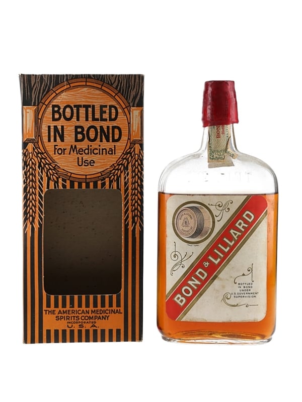 A 47cl bottle of Bond & Lillard 1916 100 Proof Bottled In Bond Under US Government at Distillery Bonded Warehouse no.368. The tax stamp reads: Made Spring 1916, Bottled Spring 1926.