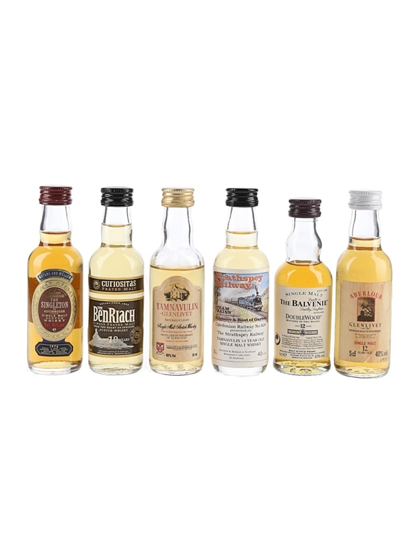 This lot contains six miniature bottles of Speyside Single Malt Scotch Whisky.