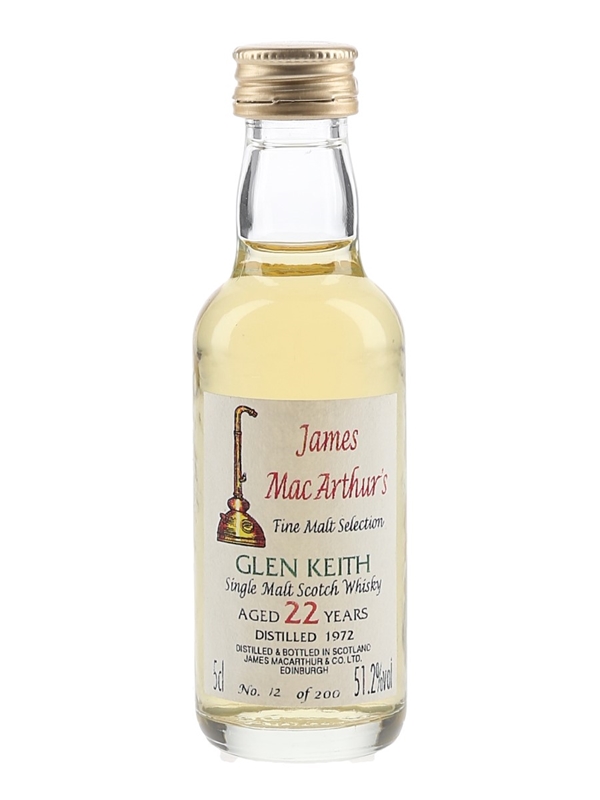 A miniature bottle of Glen Keith 22 Year Old, distilled in 1972 and bottled by James MacArthur.