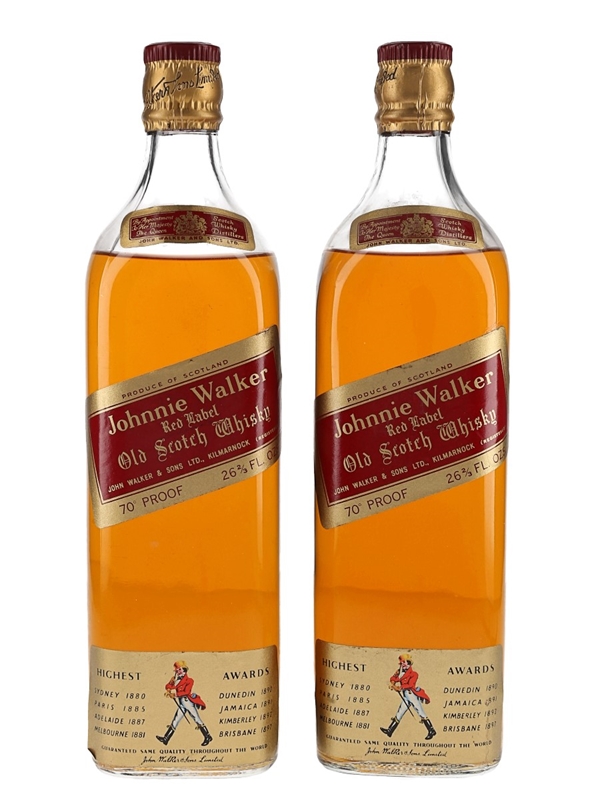 This lot contains two bottles of Johnnie Walker Red Label Old Scotch Whisky, the world's best selling Scotch whisky produced by John Walker And Sons Ltd. We estimate these were bottled in the 1960s.